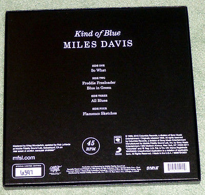 I own the original recording of this masterpiece from columbia records and a cd of same. So classic s two versions of kind of blue one a double lp set with one lp cut at the original speed and one with the corrected speed versions of so what freddie freeloader and blue in green on one side and a previously unissued version of flamenco sketches the only alternate take of any tune recorded during these sessions presented at 45rpm on the other side and the other a four single sided 45rpm lp set were cut from the three track master or alternative master and mixed. Miles davis kind of blue 2lp 45 rpm new sealed vinyl mfsl mofi mobile fidelity. Few recordings maintain their power to utterly intoxicate for decades as kind of blue does.